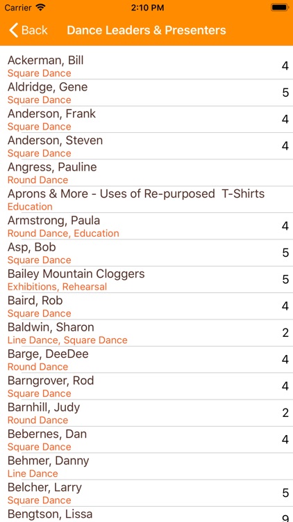 Dance leaders will see their complete list of events and can skip the daily trip to the coordination rooms by using the app to check in each day after their first in-person checkin.