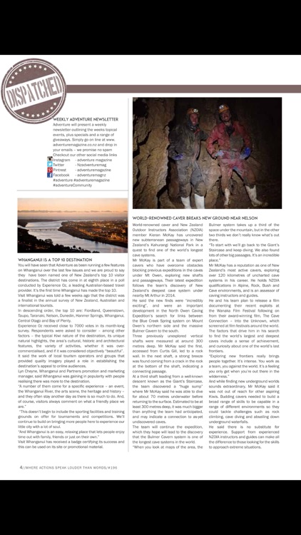 ADVENTURE MAGAZINE is a lifestyle adventure magazine that features adventures from around the world. Everything that is extreme, from big wave surfing to kayaking in the Artic, from mountain biking in Queenstown to climbing Everest, if it is extreme it is in Adventure - every issue is filled with action. Adventure Magazine is this years winner of the prestigious Maggies sport cover competition.