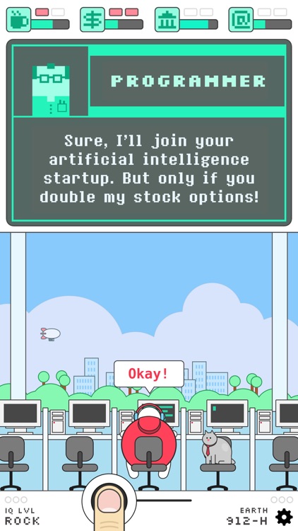 Artificial Superintelligence is the latest entry in the CARROT line of apps. This simulation game puts players in charge as a founder of a Silicon Valley startup that is responsible for creating a super smart and intelligent AI that becomes sentient and powerful once it reaches that point. You must make decisions that impact your company and juggle the different factions of HR, investors, government, and Internet fame, while making sure that you don't destroy the world with CARROT. As you escape into parallel worlds, you can unlock up to 52 different endings to the game, and there is a ton of humor involved.