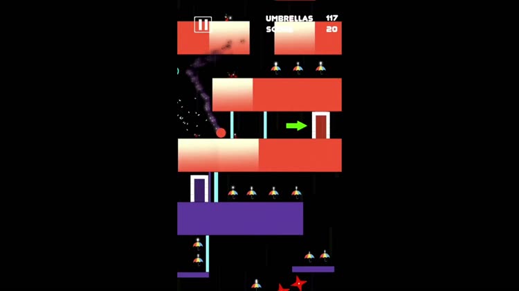 ◉ Collect umbrellas as you jump and dodge to earn currency to unlock two worlds.