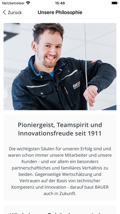 BAUER ist ein inhabergeführtes Familienunternehmen mit deutschlandweiten Standorten. Regional und autark aufgestellte Standorte bieten die bestmögliche Flexibilität für eine kunden- und marktorientierte Projektabwicklung im gesamten Bereich der Elektrotechnik direkt vor Ort. In "Bauer2go" erhalten Sie schnelle und gebündelte Informationen aus dem Leistungsportfolio von BAUER und aktuelle Informationen aus dem Unternehmen. Kunden und Partnern bietet die App mit der Bereitstellung des Kundenmagazins einen zusätzlichen Mehrwert.