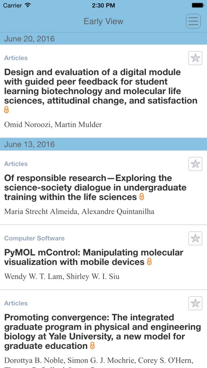 CURRENT SUBSCRIBERS to Biochemistry and Molecular Biology Education can “pair” their device with their personal or institutional subscription to enjoy full access in this iPad edition.