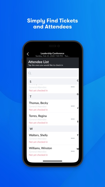 Eliminate time spent waiting in line by scanning an attendee, order, or group QR code. Alternatively, perform detailed searches for manual check-in.