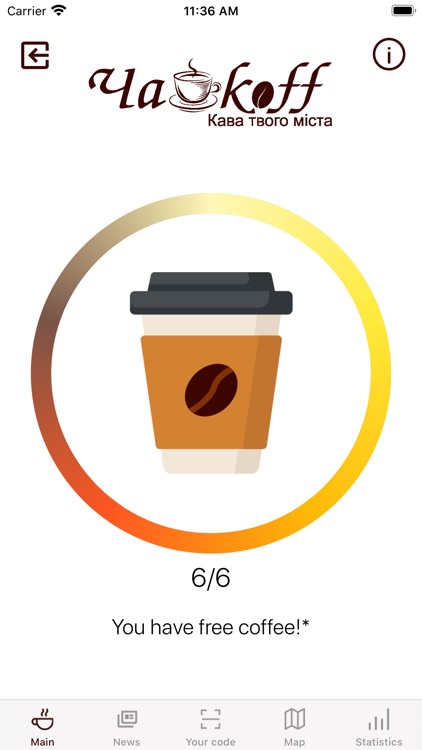 3) after buying 6 cups of coffee, you will automatically be accrued by a free cup of coffee, which you can pick up at any time and at any of the points of the Kava Cups coffee shops.