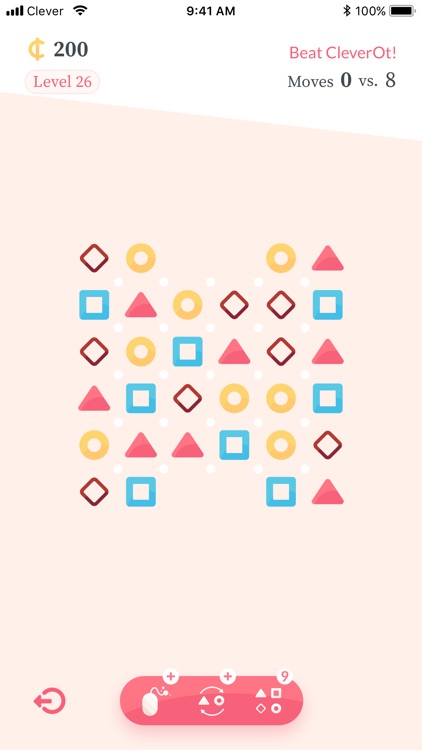 So how does it work? You need to clear all symbols on each level using as few moves as you possibly can. You can do it by matching shapes into two pairs or a single set of four the same symbols. It’s easy, but it can be tricky as well! Be vigilant, because CleverOt may spoil your plans and strategy.