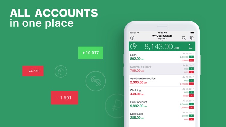 • The app contains more than 25 pre-installed income and expenses categories. You can change, delete, or add new categories to customize them in a convenient way