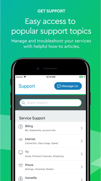 ○ Quickly access product-specific apps to manage your Panoramic Wifi, Contour TV, Homelife, or Voice service