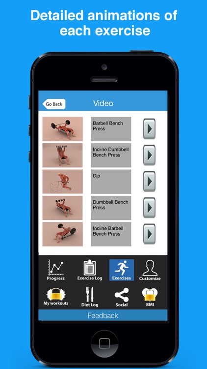 Design your own workouts along with over 200 workouts and exercise videos built in. Keep track of your progress with the diet and exercise log. Record your progress by keeping track of your stats with the progress tracker.