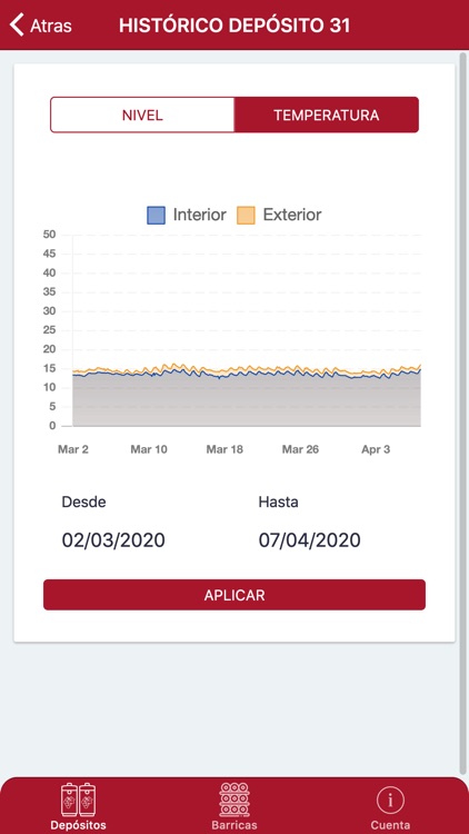 DataWine es una aplicación que complementa un sofisticado sistema de monitorización en tiempo real. Permite visualizar de forma rápida y sencilla el estado actual de los niveles de vino de uno o varios depósitos. Además puedes usarla como herramienta de análisis estadístico a través de un potente visor de históricos. Cuenta también con un sistema de alarmas instantáneas, que notifican al usuario cuando ocurre un problema.