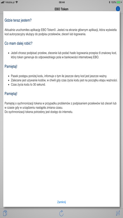 Aplikacja nie przesyła żadnych danych umożliwiających jakąkolwiek identyfikację użytkownika, czy jego urządzenia. Dbamy o bezpieczeństwo i anonimowość naszych użytkowników. Nie zapisujemy także adresów IP w przypadku synchronizacji tokena.