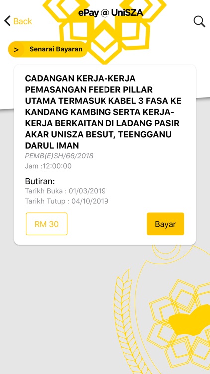Sebuah aplikasi rasmi ini dibangunkan untuk memudahkan pengurusan pembayaran tanpa tunai di UniSZA melalui telefon pintar selain pembayaran melalui wallet dan transaksi atas talian.