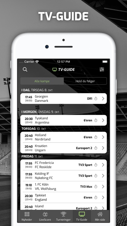 - Mulighed for at vælge favorithold og turneringer, så man får sin helt egen startside