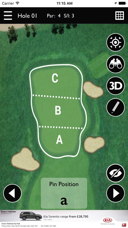 The app features the Whole in One Golf GPS Range Finder and Digital Guide to playing the clubs 18 hole golf course. The App works as an virtual aid, giving you a 3D Flyover of each hole, a pin positioning system.