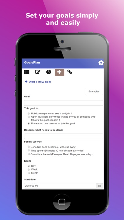 2- Enter your progress goal by goal according to the frequency you choose: daily, weekly or monthly.