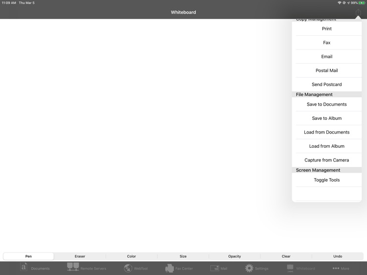 4. On your iPad/iPhone, using this app, open the document/whiteboard/photo/webpage you want to screencast. You must open it with this app. If you want the ability to annotate the image you load, use the Whiteboard module to open that image.
