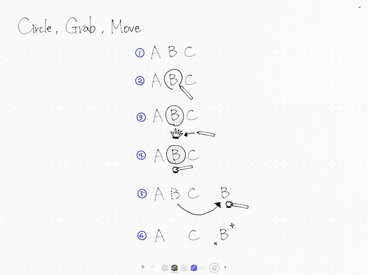 Erase with your finger, undo by tapping with two fingers, and “circle and move”.