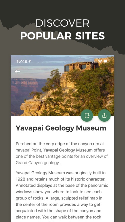 Accessibility - This app includes up-to-date accessibility information for facilities and some trails in the park, audio-described sites, and alternative text for images.