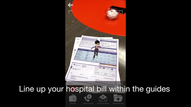 - The augmented reality experience will begin when Patient Concierge recognizes your bill.
