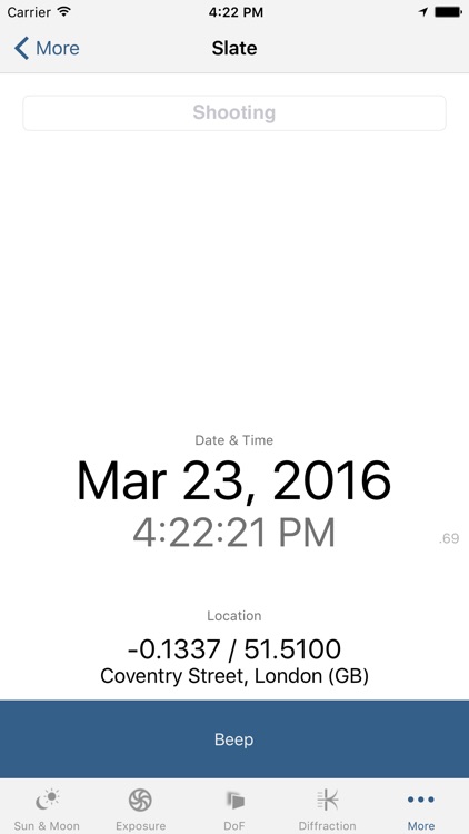 PhotoBuddy provides convenient ways to help professionals and amateurs calculate some of the most needed camera settings like Depth of Field, Diffraction the Angle of View or simple Exposure Calculations. With its large Database of different Camera Models and presets for Exposure or Color Temperature, PhotoBuddy is set up in seconds.