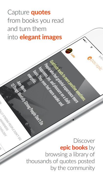 Postepic is the easiest way to turn your favorite quotes from the books you read into beautiful images. Thanks to the Optical Character Recognition (OCR) technology, it makes captured quotes from paperback and ebooks editable and lets you supercharge them with the collection of great fonts and backgrounds.