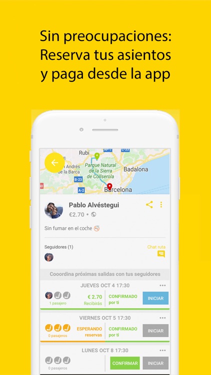 - Comparte ubicación en tiempo real: una vez iniciado un viaje compartido, puedes ver en tiempo real dónde viene el conductor o dónde están los demás pasajeros para facilitar el encuentro y la puntualidad.