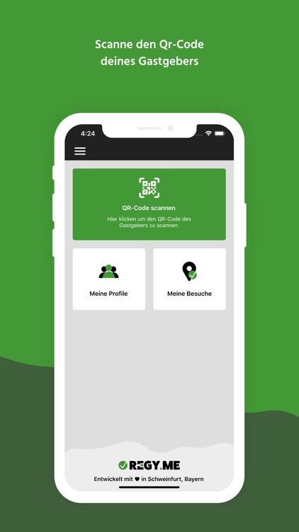 Durch die Scanfunktion in der App können Sie als Gast den bereitgestellten QR-Code des regy.me Partnerbetriebes erfassen und ihre Kontaktdaten einlesen lassen.