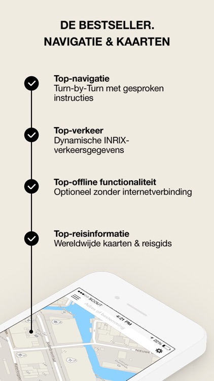 Zet Scout op je toestel en ontdek zelf waarom de app reeds miljoenen keren verkocht is (onder de naam "skobbler"), en al jaren een van de hoogst gewaardeerde kaarten is.