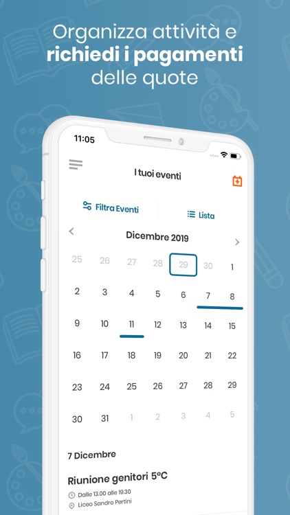 ScuolaPay è l’innovativa APP di pagamento completamente gratuita per pagare ogni attività scolastica. Facilita i pagamenti verso la scuola di contributi volontari, rette, mense e di qualsiasi attività. Consente ai genitori di pagare direttamente dallo smartphone in modo semplice, sicuro e conveniente. PAGA CON UN SEMPLICE CLICK Basta rincorrere mille pagamenti. Tutti i pagamenti della scuola in un’unica app. Paga la tua scuola o un qualsiasi ente convenzionato con un clic. Puoi anche pagare con pagoPA. Pensa a tutto la tua App ScuolaPay: effettua il pagamento, ti fornisce ricevuta, aggiorna la scadenza. Gestisci la rubrica dei genitori. Visualizza (e condividi se desideri) in totale trasparenza chi ha pagato, i movimenti e sollecita i ritardatari con un click. ORGANIZZA E RESTA AGGIORNATO Rimani costantemente aggiornato. Crea eventi, fissali sul calendario. Ricevi notifiche con le scadenze. Gestisci tutte le spese scolastiche da un solo conto. Tieni traccia dei movimenti. Analizza le spese. Controlla il tuo budget. Organizza la rubrica dei genitori tramite il nome dei figli, crea gruppi per ogni esigenza ed invita con un click. NON E’ NECESSARIA CARTA DI CREDITO ScuolaPay si può ricaricare direttamente dal tuo conto corrente, con bonifico o tramite addebito diretto SDD (Sepa Direct Debit). Non ci sono addebiti automatici. E’ anche possibile ricaricare con carta di credito con un piccolo costo di servizio a partire da 0,50€. Se qualcuno dei genitori della classe non vuole utilizzare l’APP, puoi sempre incassare il denaro con modalità tradizionale (contanti, bonifico, ecc.) e registrarlo manualmente sull’APP. Avrai almeno un saldo totale, un elenco di tutti i versamenti (sia via APP che in contanti) e trasparenza… poi vedrai che anche chi è diffidente all’inizio si convincerà. SCUOLAPAY E’ GRATUITO E SICURO ScuolaPay è gratuito. Non ha costi di attivazione o canoni. Operiamo con i maggiori standard di sicurezza. MOLTISSIME SCUOLE ACCETTANO GIÀ I PAGAMENTI CON SCUOLAPAY Riceviamo nuove adesioni di scuole ogni giorno! Se non trovi la tua scuola tra quelle che hanno aderito a ScuolaPay segnalacelo su https://scuolapay.it/ e la contatteremo per farla convenzionare. Non ci sono canoni o costi di attivazione per la scuola. Fa risparmiare costi nella gestione dei pagamenti, riduce i costi bancari. Permette di risparmia centinaia di ore amministrative per inviare pagamenti, sollecitarli e registrare gli incassi