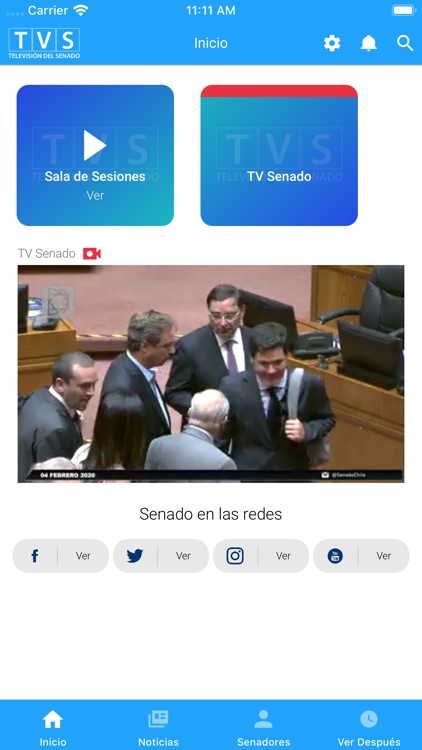 Accede a las Comisiones de tu interés que estén sesionando o a la señal de la Sala del Senado. La app ofrecerá hasta 8 transmisiones en paralelo.