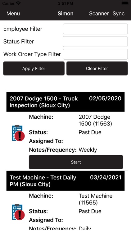 The Simon FM mobile app is intended to be used in conjunction with the Simon FM web application. After using the web application to setup your facility, machines, and job plans, the Simon FM mobile app will allow your technicians to perform the maintenance inspections that are associated with those job plans. Since Simon FM only requires internet connection when syncing, the technician will be able to pull down their inspections/work orders before heading out to any/all remote areas. While not connected to the internet, the technician will still be able to perform the inspection, record data, and complete the inspection. After they regain internet connectivity, they can then sync their data back up to the server, thus fully closing out the inspection. In addition, the app offers bar code scanning of machine labels, thus ensuring the correct machine for the inspection has been found.