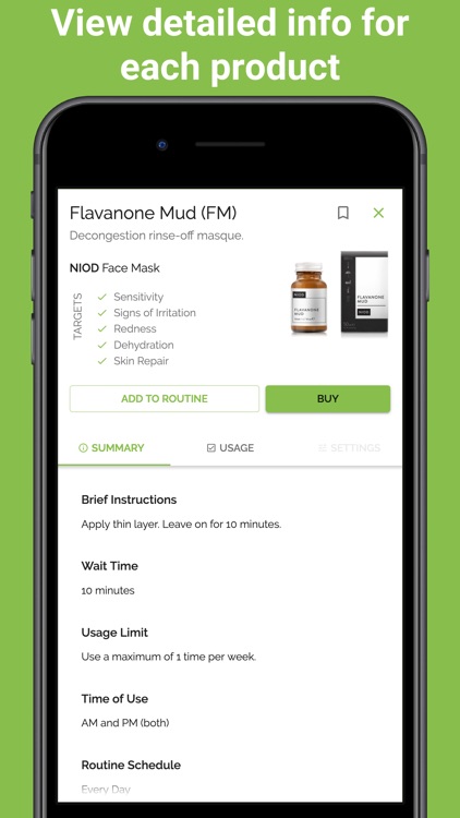 Each morning and evening, check each product off your list to keep track of which treatments you have used. This will allow the app to prevent any conflicts by showing you which products should be avoided.