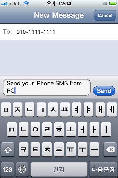 4. This App will show SMS window. Click "Send" button to send message via your iPhone.