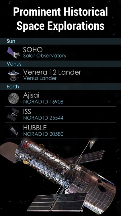 ► With Solar Walk 2 Ads+ you will be able to see highly-elaborated and realistic 3D models of spacecraft, satellites and interplanetary stations in real action. You will see where they started, track the real trajectory of their flight path, watch gravitational maneuvers, view real pictures made during the mission.