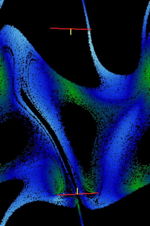 The code is highly optimized to allow a large number of particles to be simulated : it uses the NEON vector instructions of the CPU, and when present, both cores of the CPU. Therefore, it runs best on iPhone 4S and iPad2. It also runs on older hardware (starting from 3GS), but with a lower number of particles.