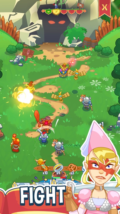 * Real-Time Battles: Train army recruits and fight the evil spawns in the strategic Tower Rush Battles