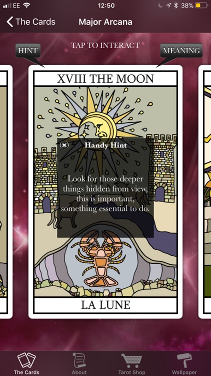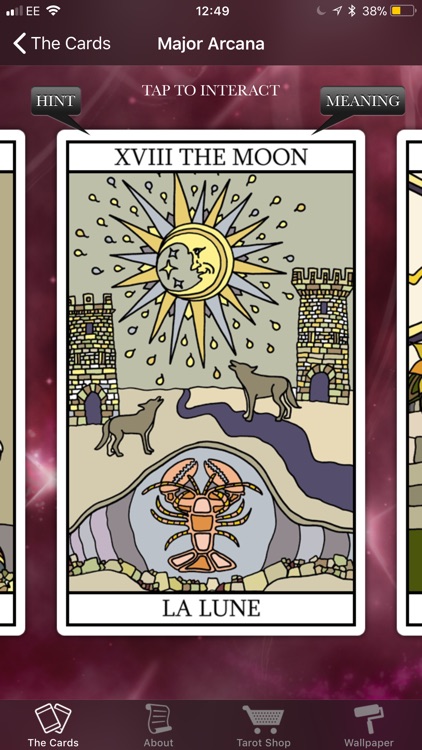 To access a tarot card's meaning simply choose your card then tap the meaning to see it, or rotate the card with your finger to see the reversed or upside down meaning. This app is compatible with any standard 78 card deck and the cards are from the 'Tarot Lovers' modern take on the traditional Marseilles style deck due for release shortly. For this reason this app is an essential companion guide for anyone looking to learn in-depth tarot meanings.