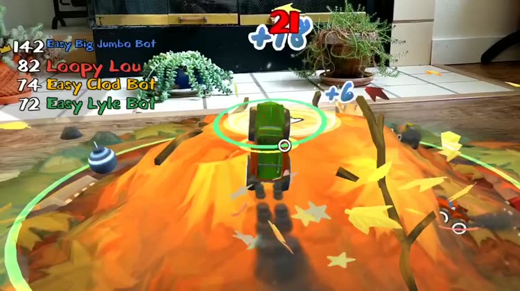 Gear up for truck bashin’ multiplayer action in Augmented Reality! Compete in adrenaline pumping four player matches as trucks race to grab the crown and become King. Nab power-ups like Turbo, Super-Size and Bomb-A-Lot and use them to smash opponents.
