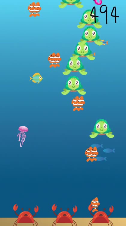 Put your thumb down on the screen to feed the baby turtles and save them from the crabs