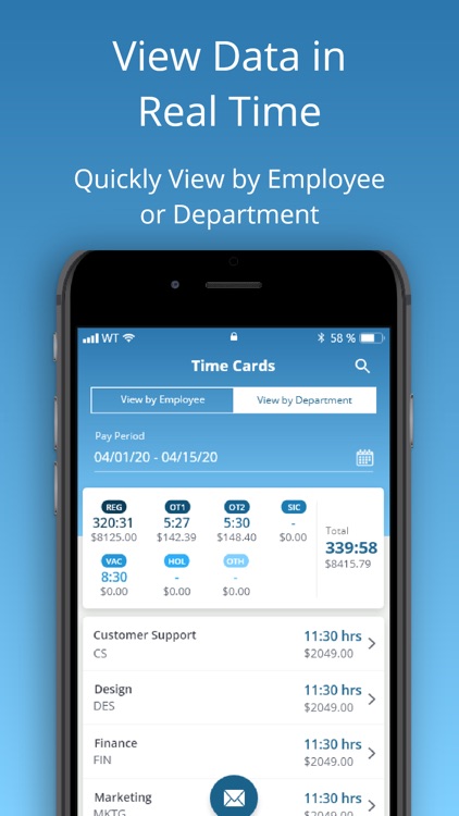 Within your account, you can filter by employee or department to return results. Search employees to show gross pay, overtime, benefit hours and more. Email the timecard summary for all employees and add notes before sending.As an administrator you can edit punches, facilitate group punches, approve timecards and even contact support directly from the app. If you change your pay period after the fact, there is a way to recalculate timecards as well.
