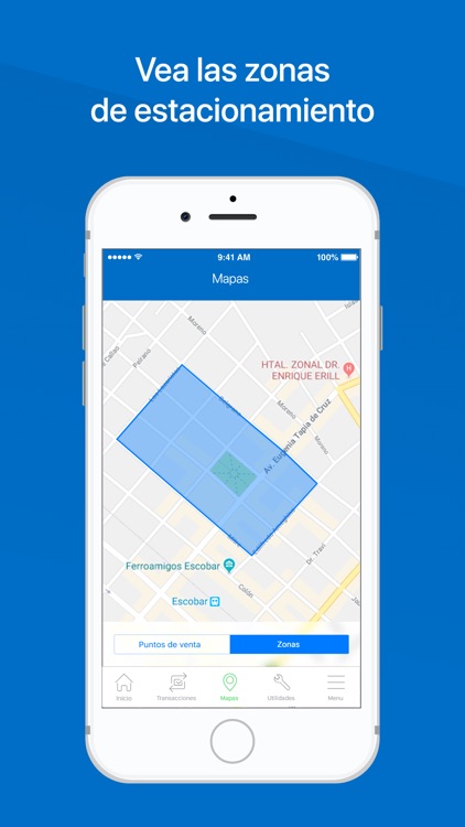 Esta aplicación te permitirá utilizar el estacionamiento medido. Podrás iniciar o finalizar el estacionamiento, consultar el saldo disponible, ver las últimas transacciones realizadas y conocer los puntos de venta autorizados.