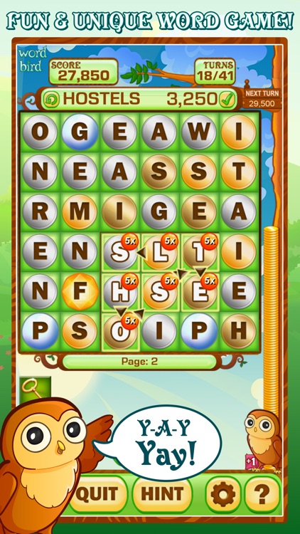 Word Bird Supreme is the latest addictive and fun game from your friends at Funkitron, makers of Slingo Supreme and Solitaire Kingdom. Easy to learn, simple to play, fun to master, Word Bird is a new innovative word game that is packed with variation and fun. You can play fast, or thoughtful, or a combination of both, Word Bird provides the level of challenge you want and its daily challenges deliver a new challenge every day.