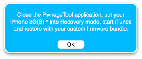 7. The PwnageTool should now create a custom, jailbroken .ispw file that you will be able to restore with.