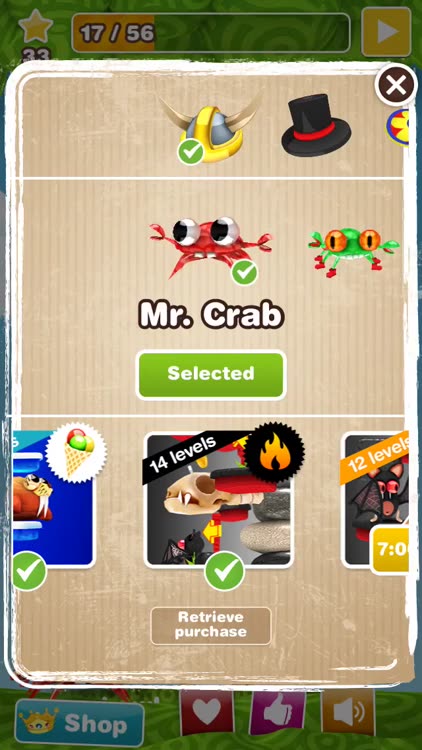 Unlike most platformers, Mr. Crab doesn’t just have you running across the screen. Instead, you get to travel upward along a corkscrew course loaded with pearls and baby crabs to save. Mr. Crab speeds along all by himself, so all you have to do is perfectly time his jumps in order to clear obstacles and reach the object at the top. The faster you are, the higher your score. No pressure! The game includes 27 colorful levels, four boss battles, and achievements and leaderboards via Game Center.
