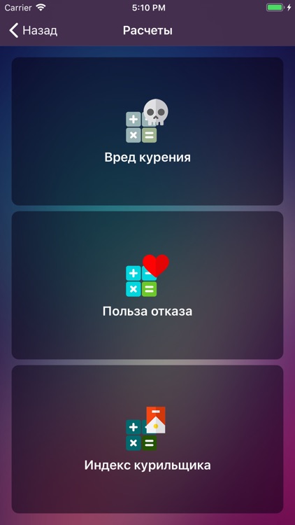 – тесты и калькуляторы для курильщика.