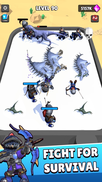 Hey brave Strategist, it's been a long time since we tamed the wild, cruel dinosaurs and won the Great merge battle war. But now, our enemy - the devil army of thousands of evil Archers, Wizards, Necromancers, and hundreds of troops of Dinosaurs including Carnotaurus, Tyrannosaurus Rex or T-Rex, Quetzalcoatlus are attacking us. World peace is risked.