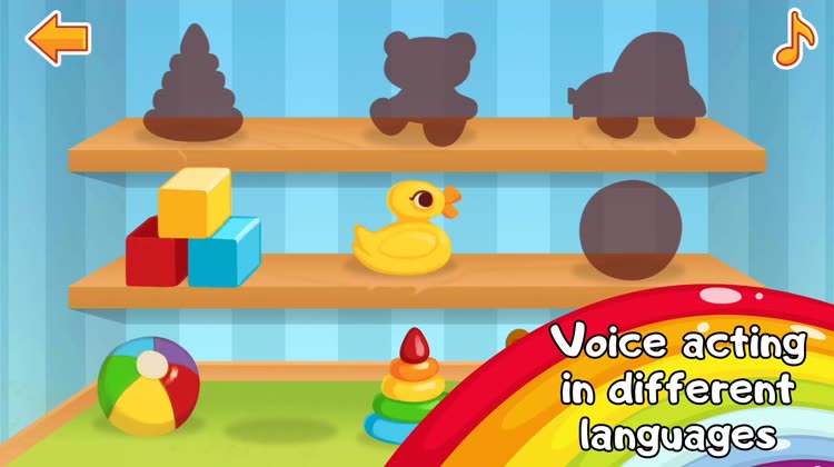 Learn 7 basic colors and 7 geometrical shapes in a form of 7 fun games with voice acting!