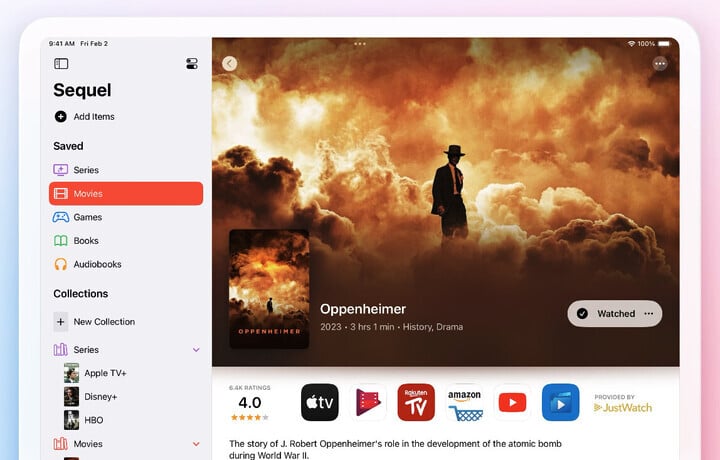 It’s a golden age of entertainment. And Sequel can help you keep track of anything and everything you’re interested in—TV shows, movies, books, games, and more.
